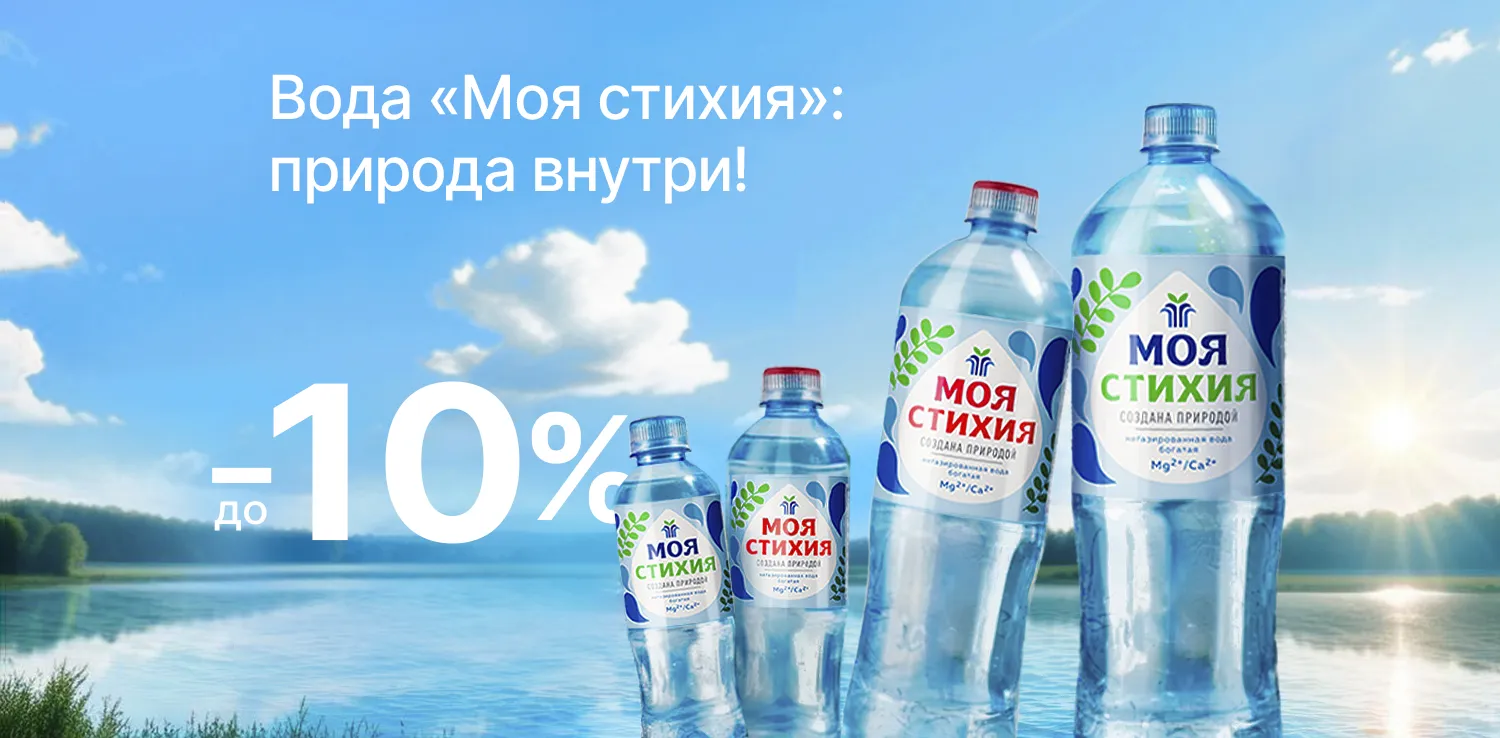 Сейчас воду «Моя стихия» можно приобрести со скидкой до 10%.