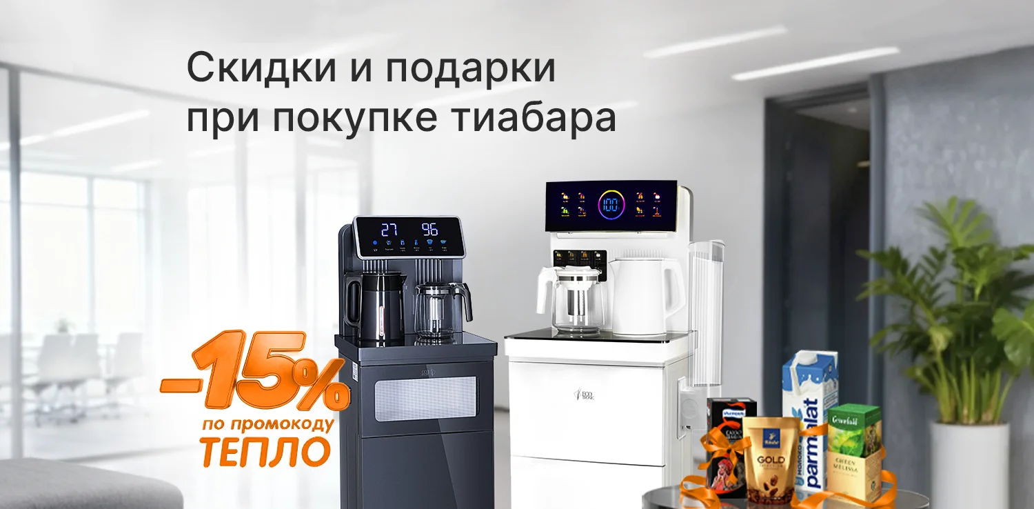 Вариант № 2: при покупке тиабара по полной стоимости – три бонуса на выбор. Для тех, кто ценит готовые решения и приятные сюрпризы: подарочный набор за 5 ₽, расширенная гарантия на тиабар или комплект качественной питьевой воды за 2 ₽.