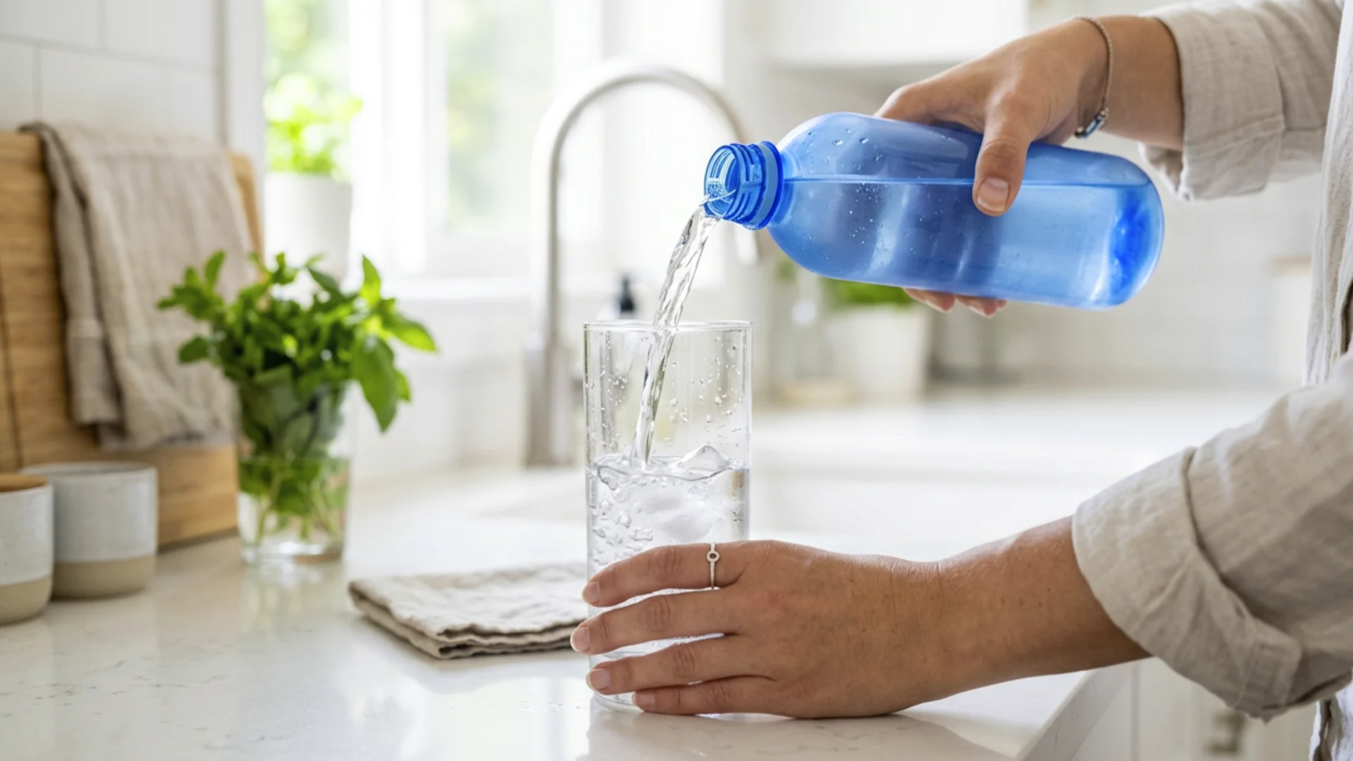 - Разлить активированную воду по разным емкостям. Желательно использовать стеклянные или пластиковые бутылки с плотными крышками, чтобы сохранить свойства активированной воды как можно дольше.
