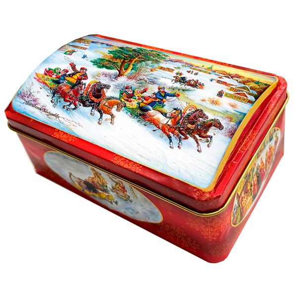 Чай чёрный отборный крупнолистовой высшего сорта в подарочной шкатулке с иллюстрациями на тему русской зимы.