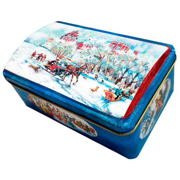Чай чёрный отборный среднелистовой высшего сорта в подарочной шкатулке с иллюстрациями на тему русской зимы.