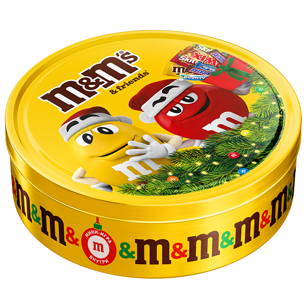 Новогодний подарочный набор M&M’s & Friends представляет собой праздничную посылку, украшающую праздник. Подарочный набор в премиальной упаковке состоит из ассорти сладостей известных брендов: M&M's, Bounty, Twix, Mars, Snickers, Skittles, Milky Way. Посылка с конфетами является отличным индивидуальным подарком. Прочную упаковку с новогодним дизайном, изготовленную из жести, можно использовать для сохранения важных вещей и различных целей на протяжении длительного времени.