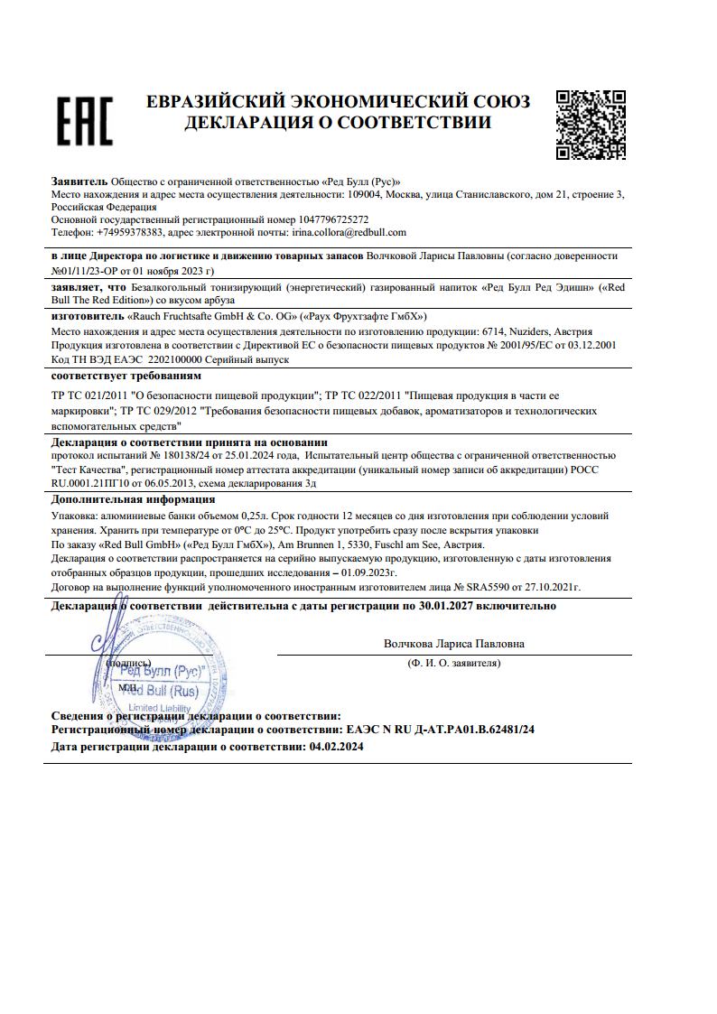 Энергетический напиток Red Bull / Ред Булл со вкусом арбуза 0.25 литра, ж/б, 24 шт. в уп. купить с доставкой по Москве и МО. Заказать на дом или в офис можно через сайт, мобильное приложение Vodovoz.ru или по телефону. Принимаем заказы 24/7. Доставка осуществляется в удобное для Вас время.