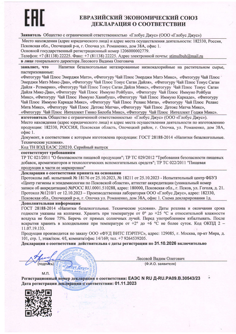 Уникальный купаж заварного чая (а не экстрактов как у большинства холодных чаев) - парагвайского йирбе матэ, всего 2 ккал, без сахара, без сахарозаменителей, без ароматизаторов, без консервантов.