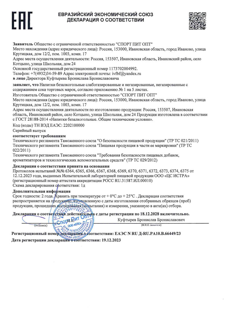 Выпивать одну бутылку до, после или во время физической нагрузки.Допускается выпадение естественного осадка.Перед употреблением взбалтывать.