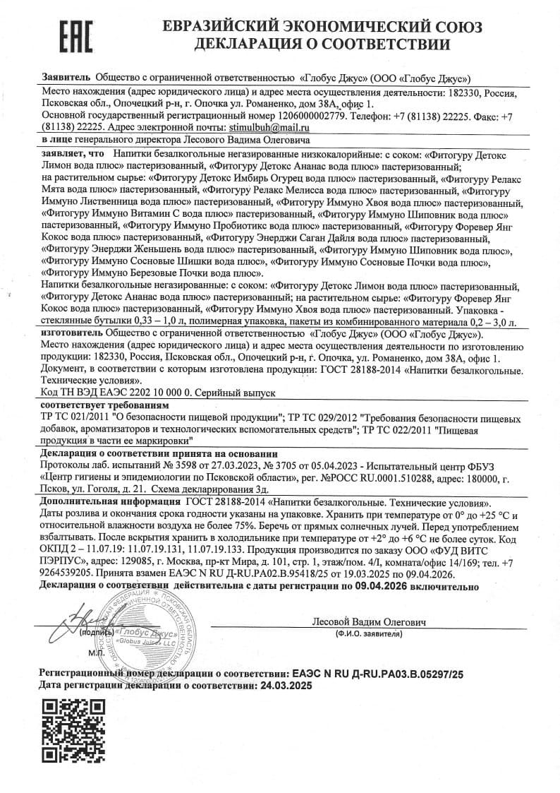 Набор напитков сокосодержащих Фитогуру Detox Ананас Вода Плюс - в отличии от других ароматизированных вод, содержит только очищенную воду и 10% пюре ананаса и сока прямого отжима свежего ананаса.