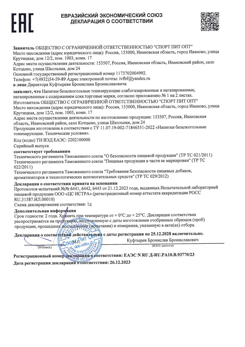 Состав: подготовленная питьевая вода, экстракт плодов облепихи, экстракт прополиса, экстракт розмарина, экстракт эхинацеи, регулятор кислотности – лимонная кислота, ароматизаторы согласно вкусу, экстракт элеутерококка колючего, экстракт липы, консервант – сорбат калия, подсластитель – сукралоза. Допускается выпадение естественного осадка.