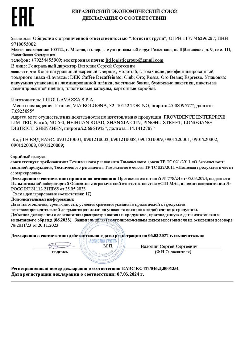 Кофе LavAzza / Лавацца Espresso молотый 250 гр