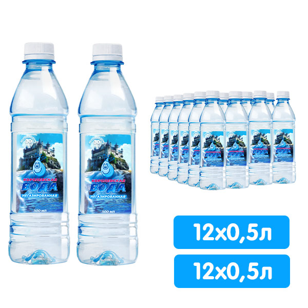 - «Королевская вода» 0.5 л без газа, ПЭТ, 12 шт./уп. – 2 упаковки.