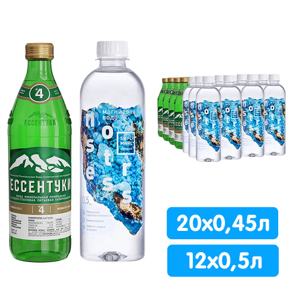 - Лечебно-столовой воды «Ессентуки» 0,45 л (20 шт. в упаковке);
