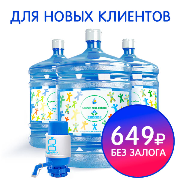 - Питьевой воды «Сделай мир добрее» 19 литров (оборотная тара);