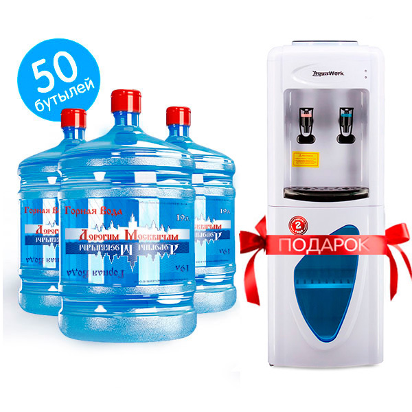 Закажите 50 оборотных бутылей 19 литров горной воды «Дорогим Москвичам» и получите эффектный напольный кулер всего за 1 рубль. Доставка – бесплатно.