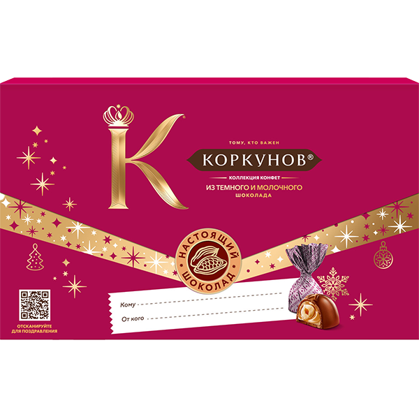 Коллекция конфет от «Коркунов»: изысканный темный и молочный шоколад в подарочной упаковке.