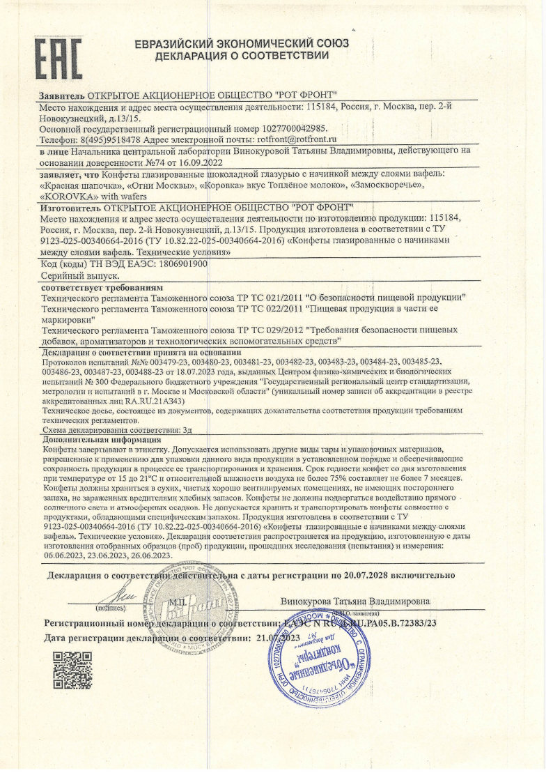 Знаменитые конфеты «Красная Шапочка» от фабрики «Красный Октябрь» – сливочно-ореховое пралине между слоями тонких вафель, сверху – волны ароматной шоколадной глазури.