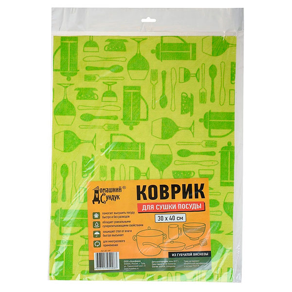 Коврик "Домашний Сундук" предназначен для сушки предметов кухонной утвари. Изготовлен из губчатой вискозы. Благодаря такому составу, процесс сушки происходит быстро и качественно. При загрязнении коврик достаточно постирать, и он полностью восстановит свои свойства.