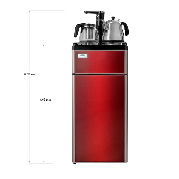 Кулер оснащен двумя чайниками: для заварки чая и для кипячения воды.