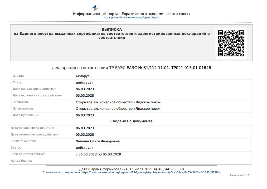 ОАО «Лидское пиво» |