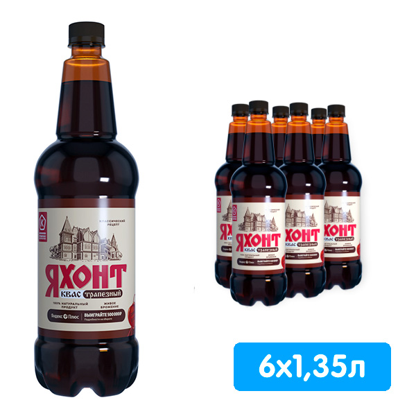 Квас Яхонт Трапезный 1.35 литра, пэт, 6 шт. в уп. купить с бесплатной доставкой по Москве и МО. Заказать на дом или в офис можно через сайт, мобильное приложение Vodovoz.ru или по телефону. Принимаем заказы 24/7. Доставка осуществляется в удобное для Вас время.