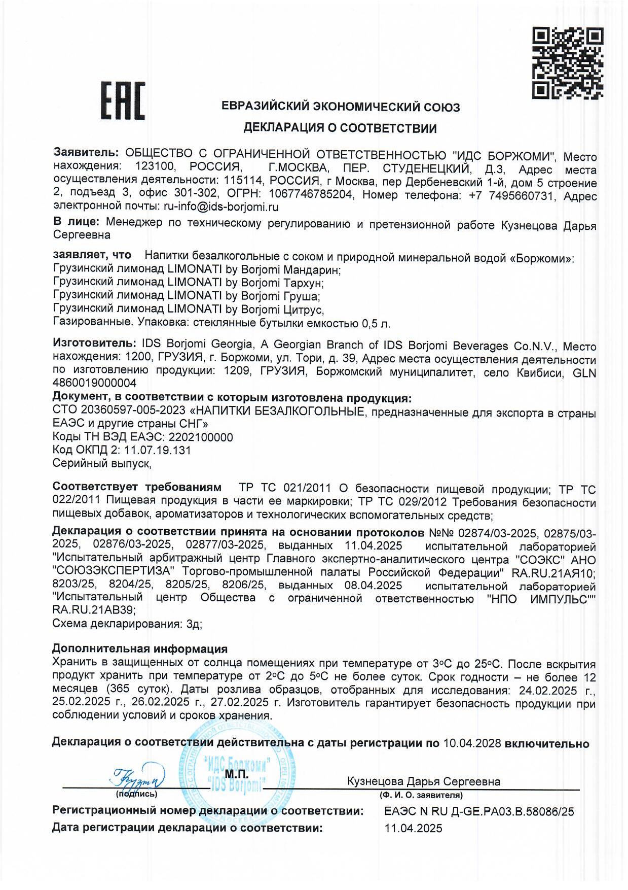 «IDS Borjomi Georgia, A Georgian Brench of IDS Borjomi Beverages Co. N.V.» |