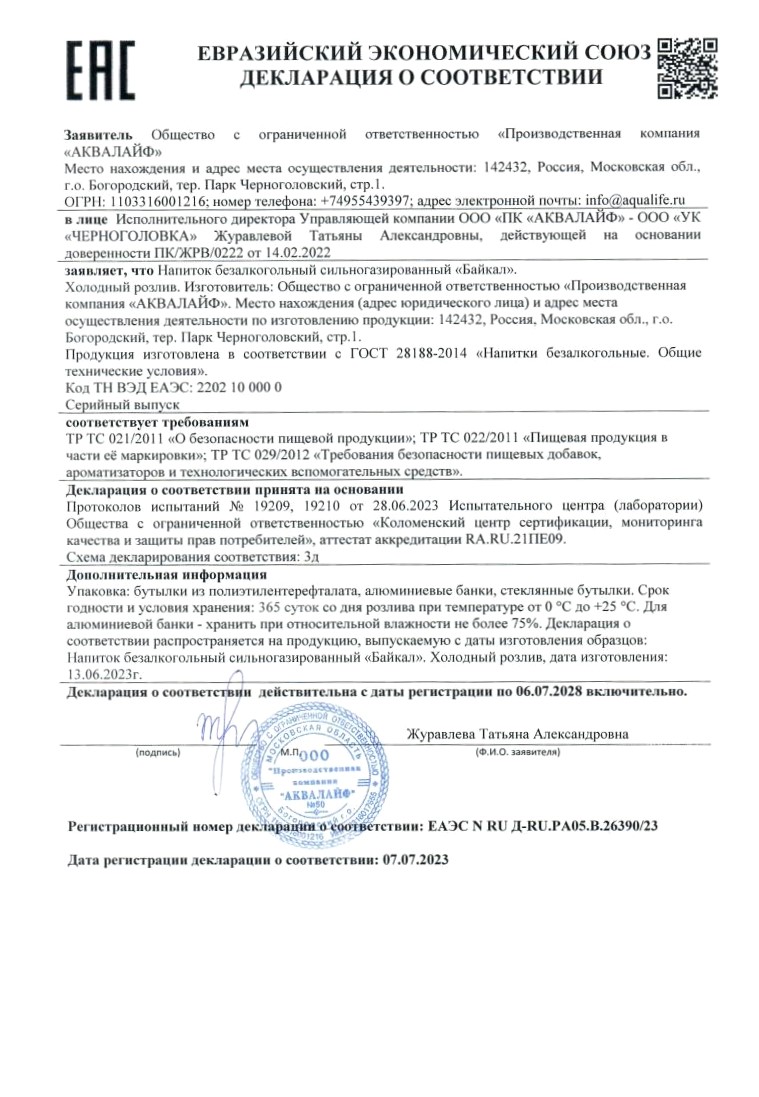 "Байкал". Безалкогольный сильно-газированный тонизирующий напиток