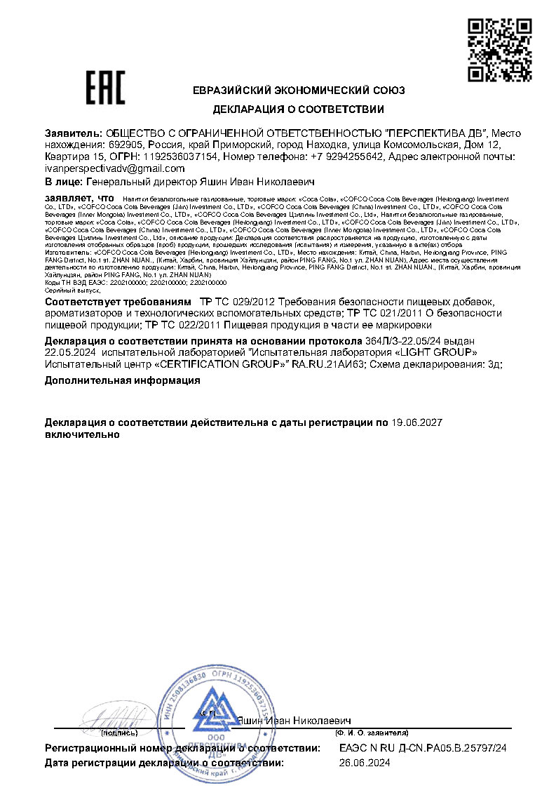 Состав: очищенная вода, сахар, краситель сахарный колер IV, регулятор кислотности ортофосфорная кислота, натуральные ароматизаторы, кофеин (менее 150 мг/л).