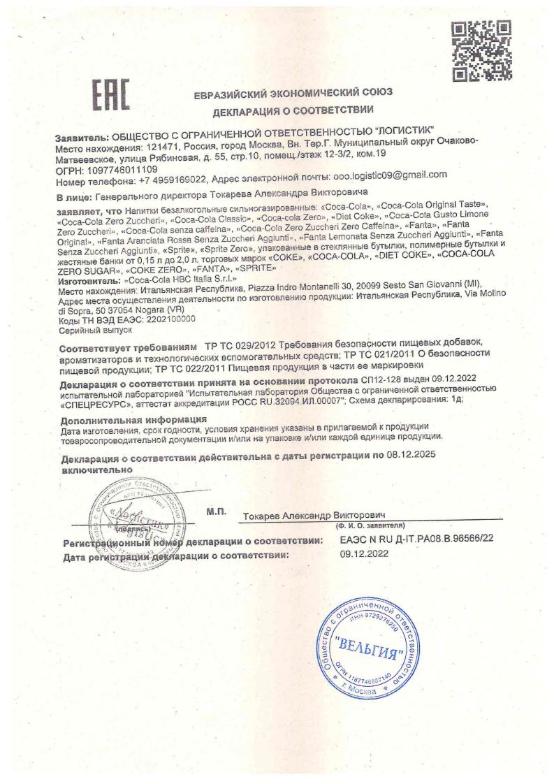 Всемирно известный газированный напиток, обладающий уникальным вкусом с бурлящими колкими пузырьками и карамельным ароматом. Содержит кофеин. Еще в 1886 году аптекарь Джон Пембертон создал уникальный сироп на основе трав, который затем смешали с газированной водой, и на свет появилась сладкая и бодрящая Coca-Cola.