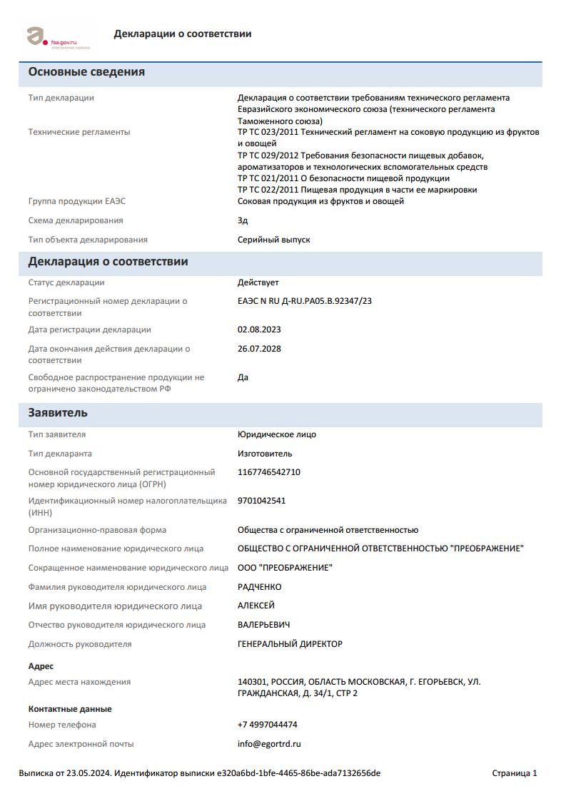 ООО «ПРЕОБРАЖЕНИЕ» |