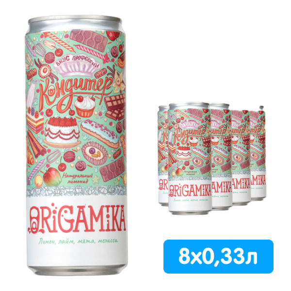 Лимонад Origamika Кондитер (лимон, лайм, мята, мелисса), 0.33 литра, газ, ж/б, 8 шт. в уп. купить с доставкой по Москве и МО. Заказать на дом или в офис можно через сайт, мобильное приложение Vodovoz.ru или по телефону. Принимаем заказы 24/7. Доставка осуществляется в удобное для Вас время.