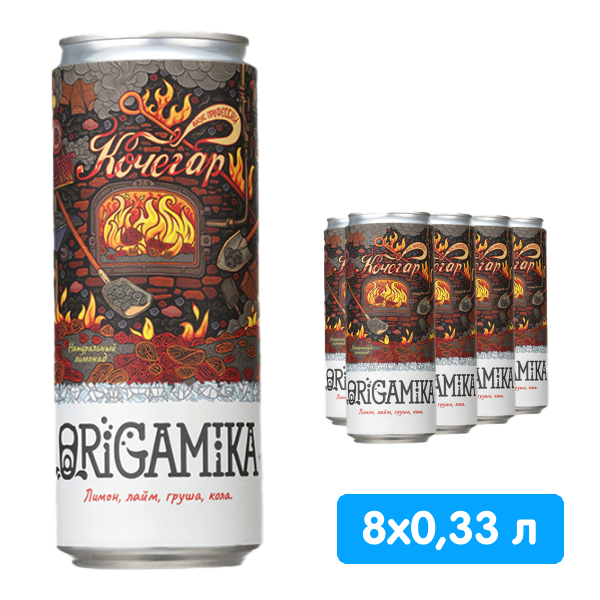 Лимонад Origamika Кочегар (лимон, лайм, груша, кола), 0.33 литра, газ, ж/б, 8 шт. в уп.