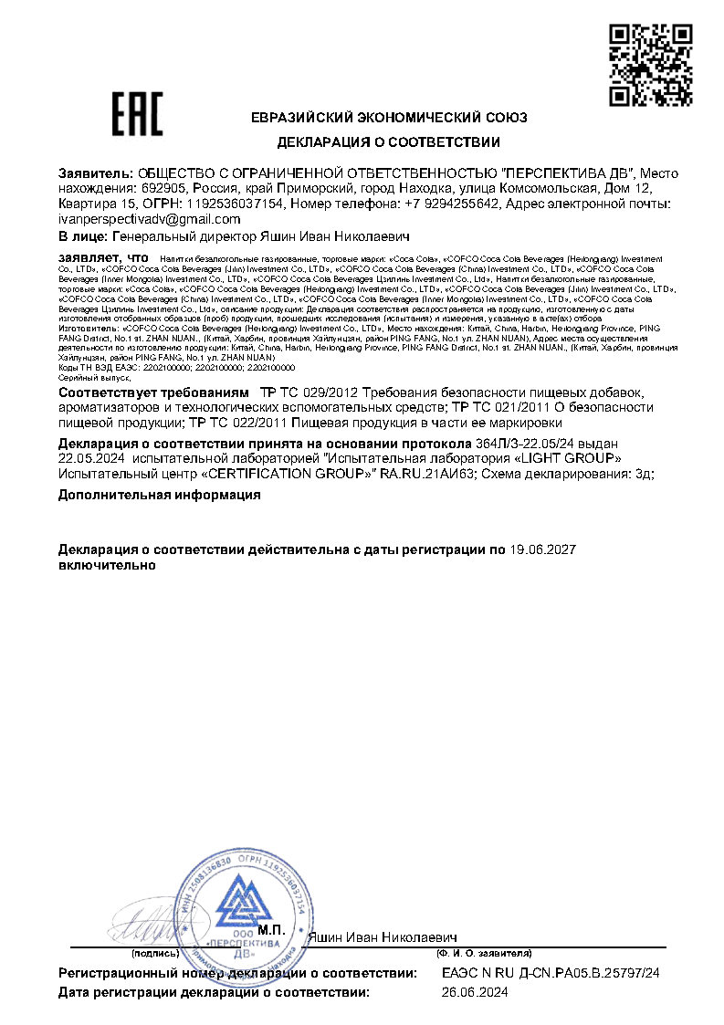 Энергетическая ценность на 250 мл – 25 ккал, что составляет 1 % от рекомендуемой суточной потребности (рекомендуемая суточная потребность – 2500 ккал в соответствии с ТР ТС 022/2011).
