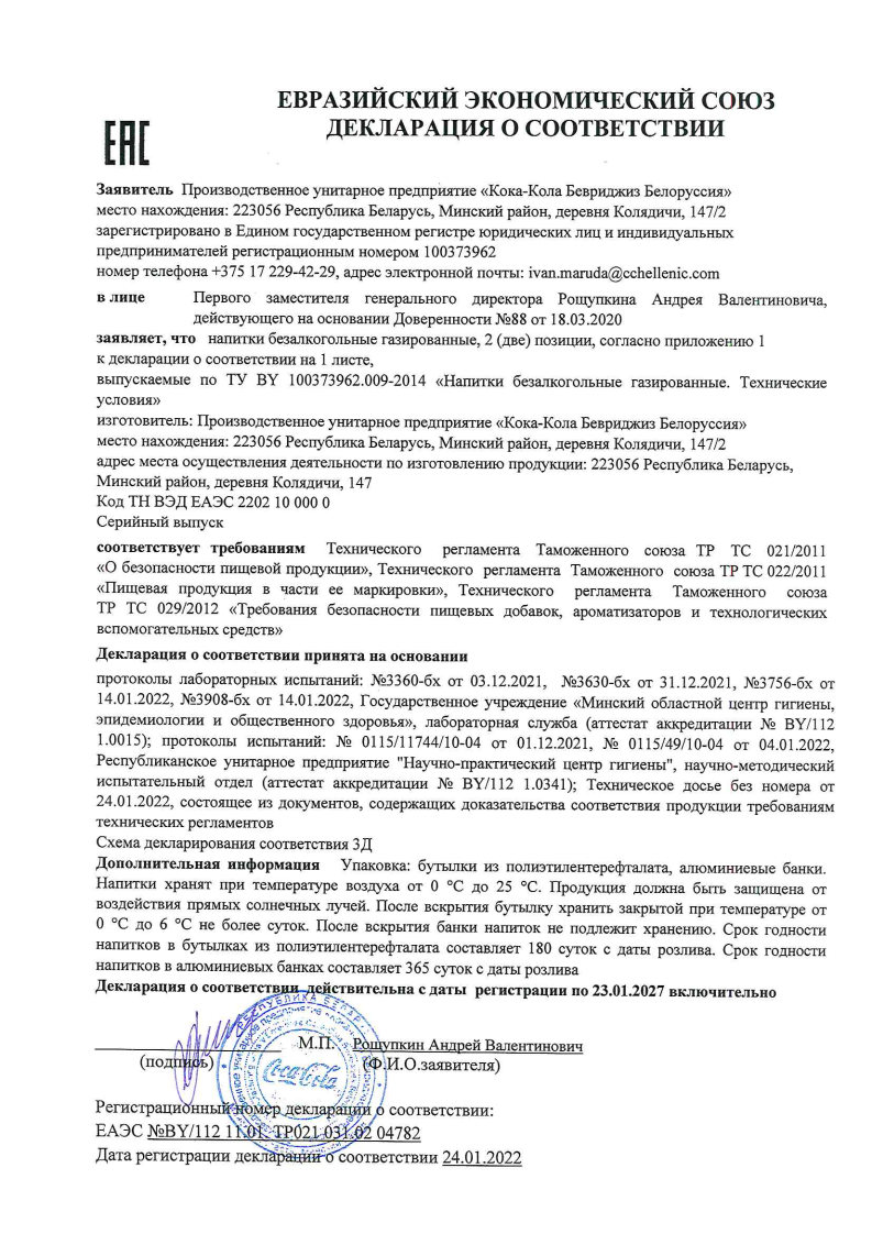 УП "Кока-Кола Бевриджиз Белоруссия" |