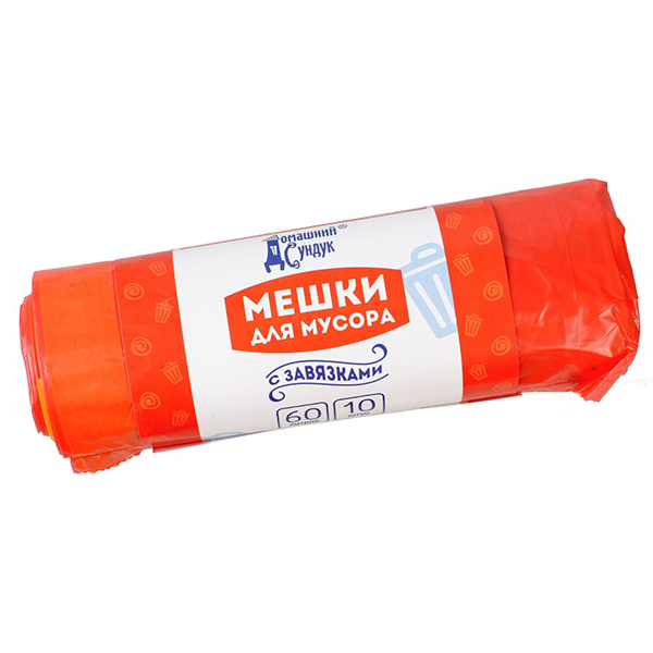 Мешки для мусора Домашний сундук красные с завязками 60 литров, 10 шт