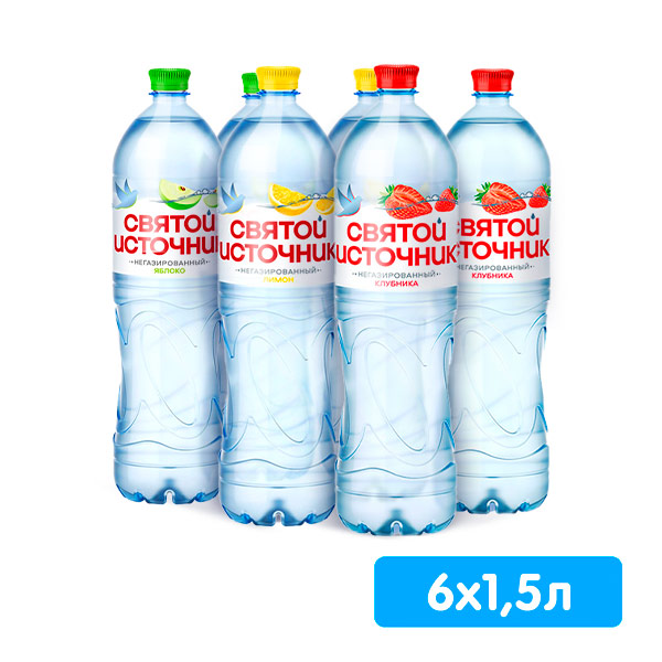 Микс вкусов «Святой источник» 1.5 литра, без газа, пэт, 6 шт. в уп. купить с доставкой по Москве и МО. Заказать на дом или в офис можно через сайт, мобильное приложение Vodovoz.ru или по телефону. Принимаем заказы 24/7. Доставка осуществляется в удобное для Вас время.