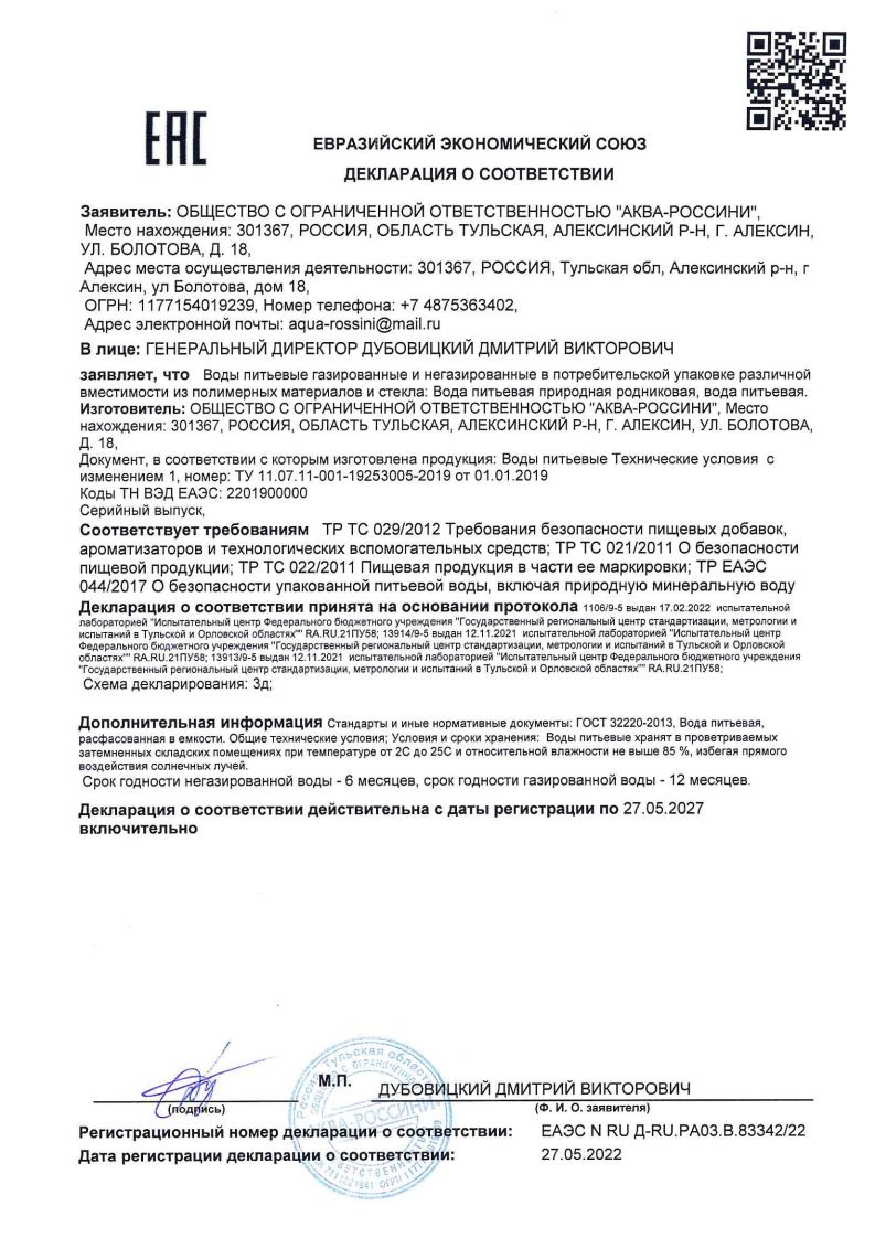 По результатам лабораторных исследований, питьевая родниковая вода Aqua SpiritT «Naturale» прошла проверку на соответствие требованиям качества и безопасности пищевой продукции.