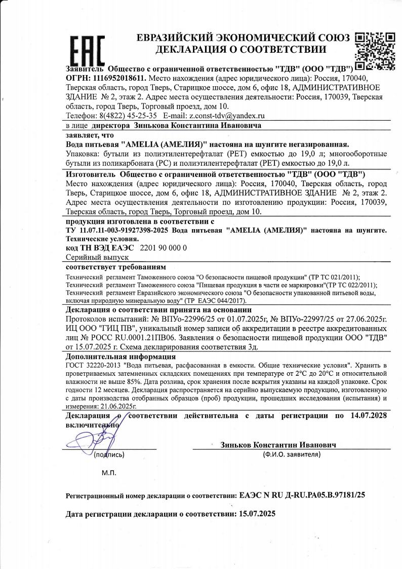 Вода Amelia 19 литров в одноразовой таре купить с бесплатной доставкой по Москве и МО. Заказать на дом или в офис можно через сайт, мобильное приложение Vodovoz.ru или по телефону. Принимаем заказы 24/7. Доставка осуществляется в удобное для Вас время.