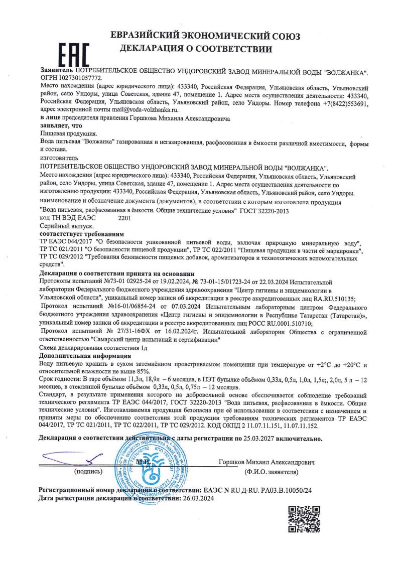 По результатам лабораторных исследований, питьевая вода «Волжанка» прошла проверку на соответствие требованиям качества и безопасности пищевой продукции.