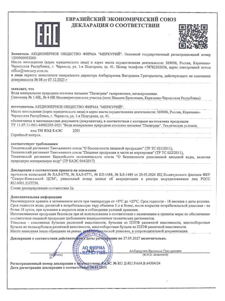 По результатам лабораторных исследований, питьевая минеральная вода «Пилигрим» прошла проверку на соответствие требованиям качества и безопасности пищевой продукции.