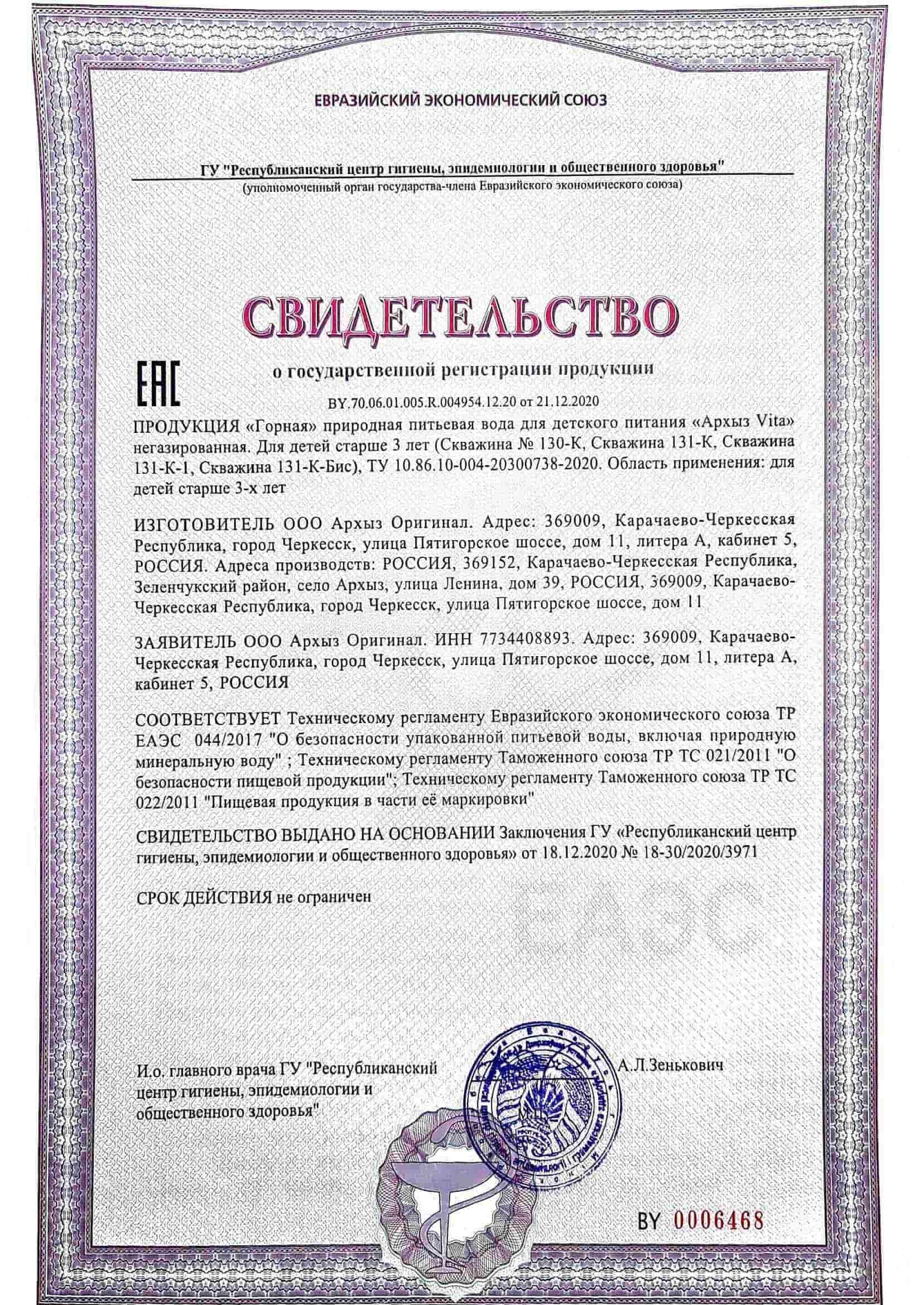 По результатам лабораторных исследований, питьевая вода «Архыз Vita» прошла проверку на соответствие требованиям качества и безопасности пищевой продукции.