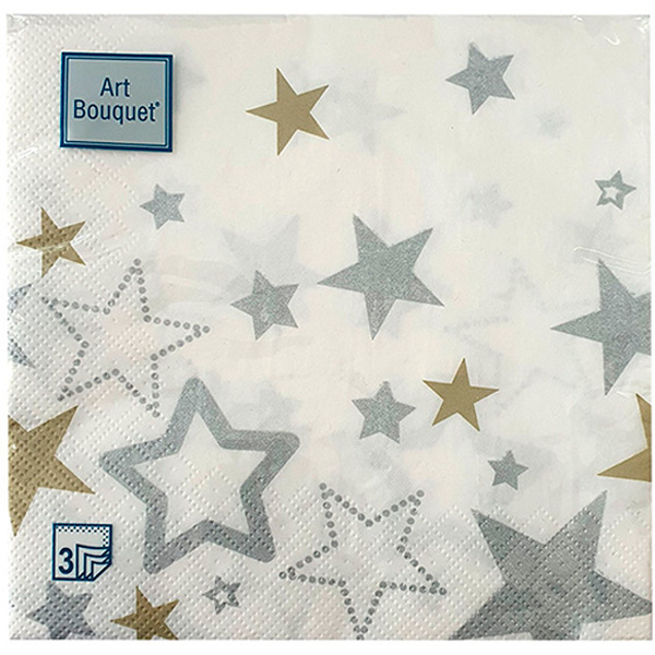 Салфетки бумажные Art Bouquet Звезды на белом 3 слоя 33x33 см, 20 шт.