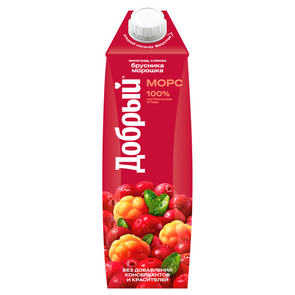 Морс Добрый брусника, морошка, виноград, клюква 1 литр купить с бесплатной доставкой по Москве и МО. Заказать на дом или в офис можно через сайт, мобильное приложение Vodovoz.ru или по телефону. Принимаем заказы 24/7. Доставка осуществляется в удобное для Вас время.