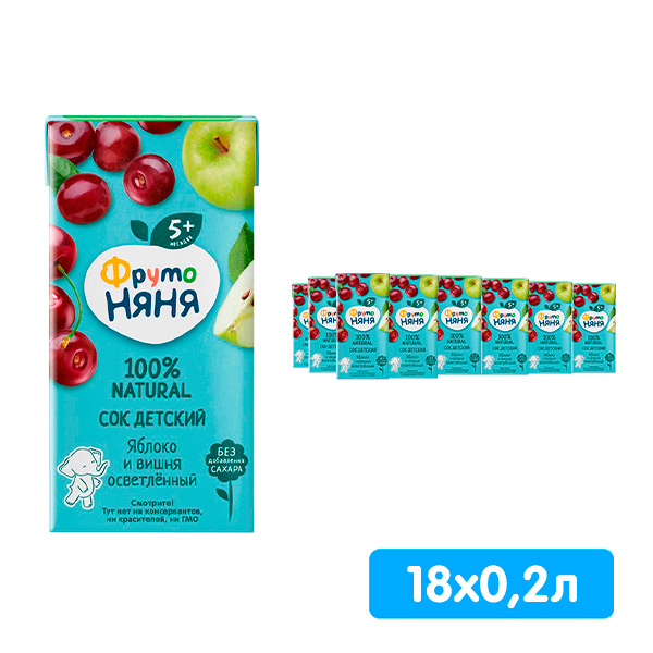 Сок ФрутоНяня яблоко-вишня осветлённый 0.2 литра, 18 шт. в уп. купить с доставкой по Москве и МО. Заказать на дом или в офис можно через сайт, мобильное приложение Vodovoz.ru или по телефону. Принимаем заказы 24/7. Доставка осуществляется в удобное для Вас время.