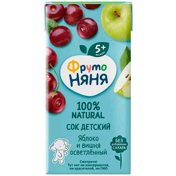 Сок ФрутоНяня Яблоко-вишня осветленный — отличный способ познакомить малыша старше 5 месяцев с новыми вкусами. В его составе только на 100% натуральные ингредиенты. Яблочно-вишневый сок ФрутоНяня — отличный способ разнообразить привычное меню ребенка и зарядить его дополнительной энергией!