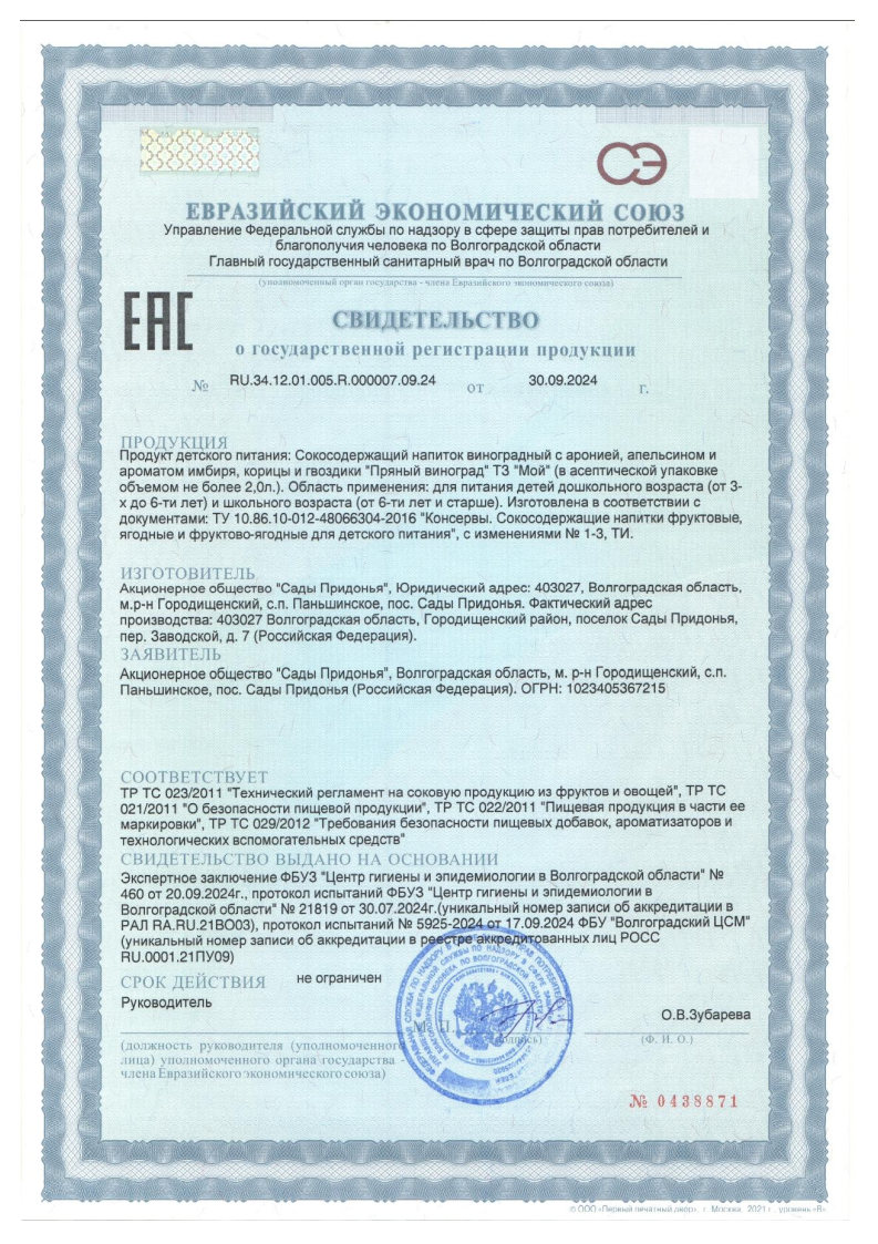 Сокосодержащий напиток "Пряный виноград", Мой, с виноградом и ароматом пряностей – отличный выбор для праздничного стола или уютного вечера! Подходит для питания детей от 3 лет.