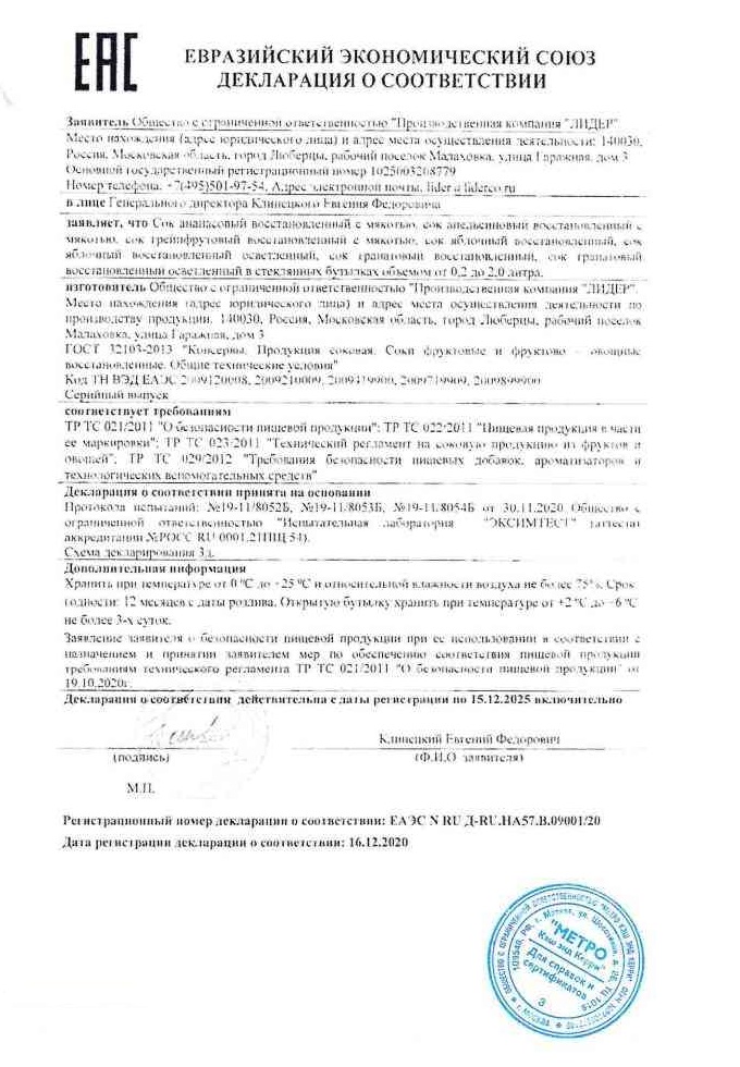 Ананасовый сок востановленный, с мякотью. Рекомендуется употреблять как самостоятельный напиток, а также использовать для приготовления коктейлей