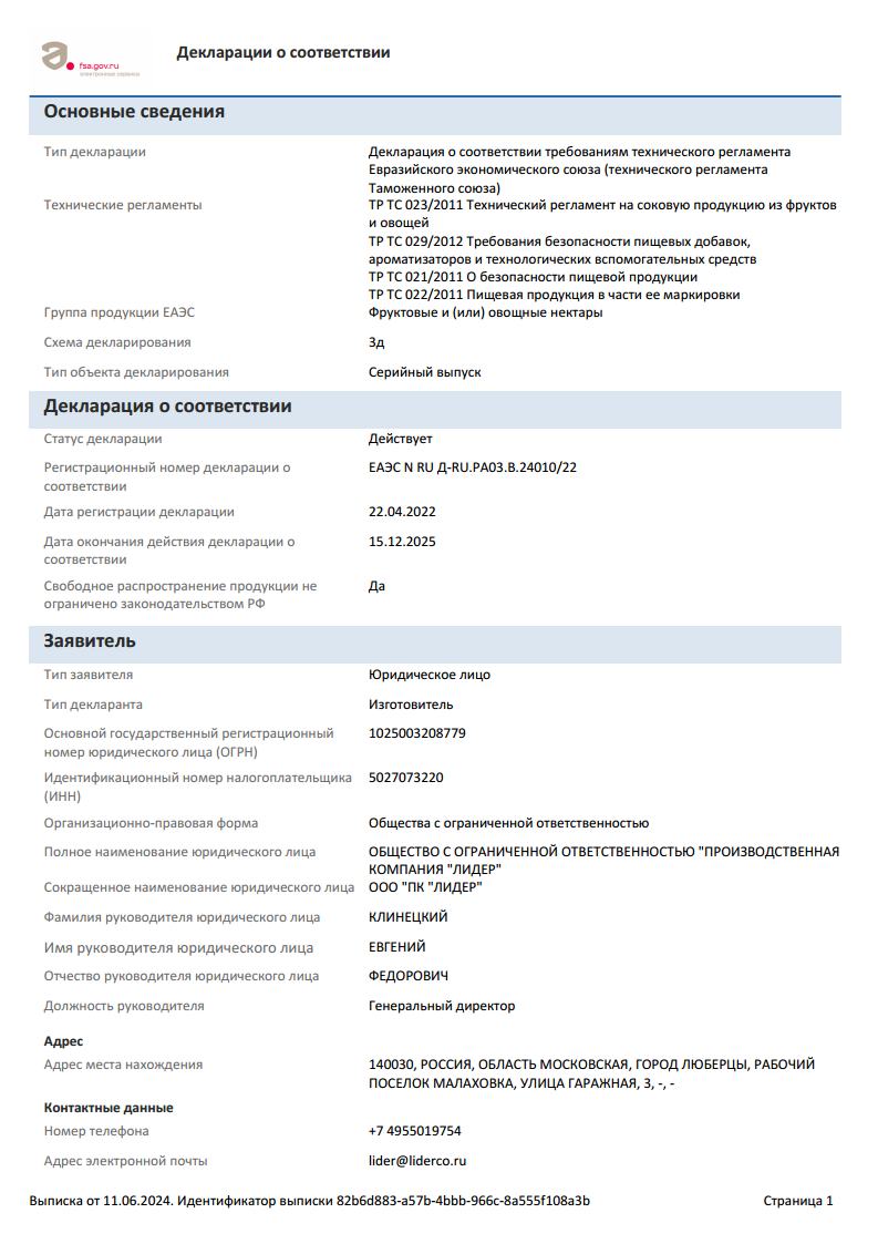 Нектар вишневый, 1 л — напиток, который прекрасно освежает, охлаждает и утоляет жажду. При его производстве не используется сахар, искусственные красители и консерванты, поэтому его можно давать даже детям в возрасте от пяти месяцев. Напиток характеризуется рядом полезных свойств — содержит в своем составе много витаминов В и С, каротина, калия, кальция, цинка, хрома, железа и других важных микроэлементов. Он укрепляет иммунитет, улучшает работу желудочно-кишечного тракта, благоприятно сказывается на работе сердечно-сосудистой и нервной систем. Напиток представлен в компактной упаковке, рассчитанной на одно применение. Его можно взять с собой на прогулку, учебу, работу или пикник.