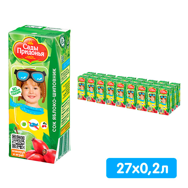Сок Сады придонья яблоко / шиповник 0.2 литра, 27 шт. в уп.