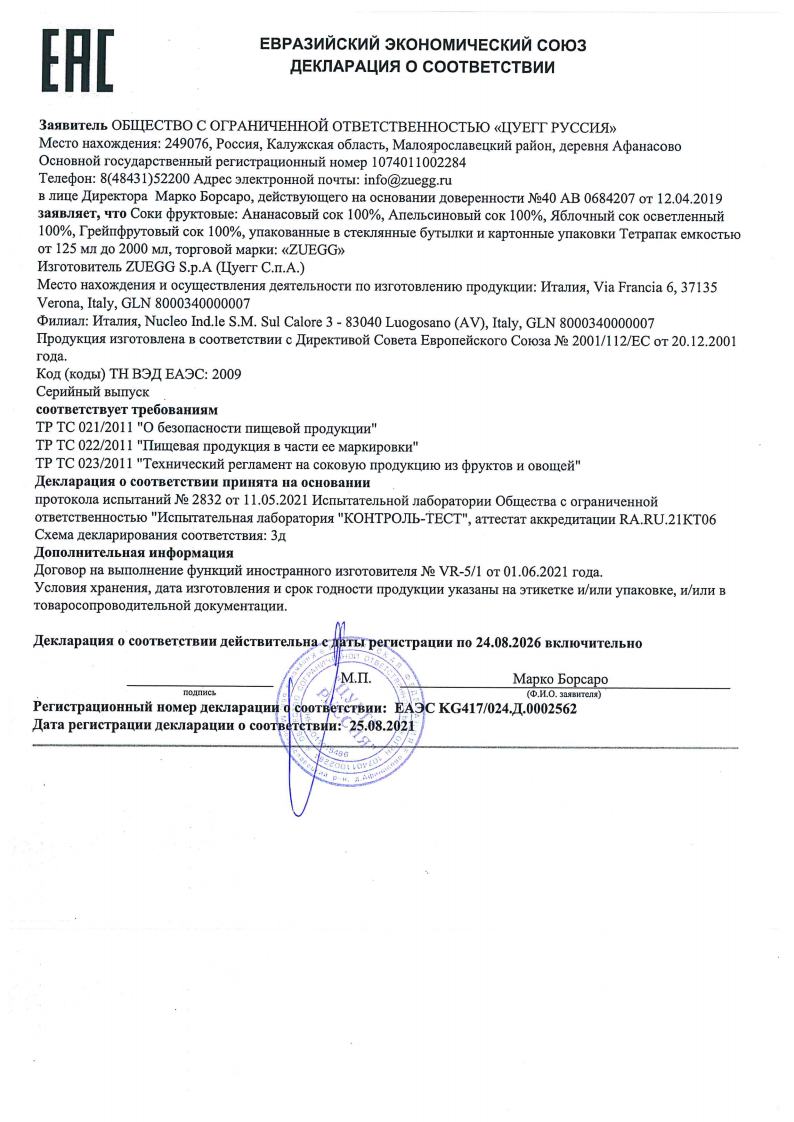 Итальянская компания Zuegg выращивает и собирает фрукты с 1890 года. Соки Zuegg — это натуральность, вкус и польза. Они не содержат красителей, консервантов и ароматизаторов. Для их производства используются только самые лучшие и свежие фрукты.
