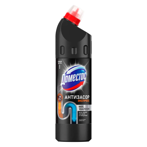 Средство для устранения засоров в трубах Доместос, 750 мл устраняет даже самые сложные засоры в трубах на кухне и в ванной всего за 7 минут*. Гель растворяет волосы, мыльный налет, остатки пищи - жировые, белковые, углеводные, овощи, фрукты. Средство отлично работает даже в стоячей воде. Эффективность продукта подтверждена экспериментальными тестами.