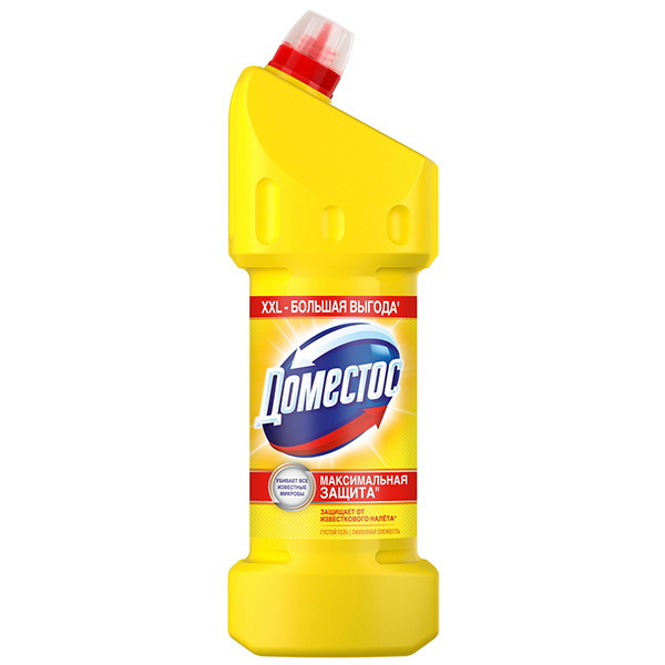 Новое поколение универсального средства Доместос Максимальная Защита’ теперь содержит особые молекулы против известкового налета, препятствующие образованию налета до 3** раз дольше.Регулярное использование Доместос для уборки дома позволит вам постоянно наслаждаться идеальной чистотой и белизной. Чистящее средство Доместос «Лимонная свежесть» очень экономично и расходуется дольше, чем жидкие средства, благодаря густой гелевой текстуре. Вы можете использовать Доместос гель не только для очищения унитаза – средство также эффективно для удаления плесени, мыльного осадка, для обработки и дезинфекции малых поверхностей в доме. Кроме того, Доместос гель удобен в использовании – просто нанесите его под ободок унитаза и оставьте на 15 минут.