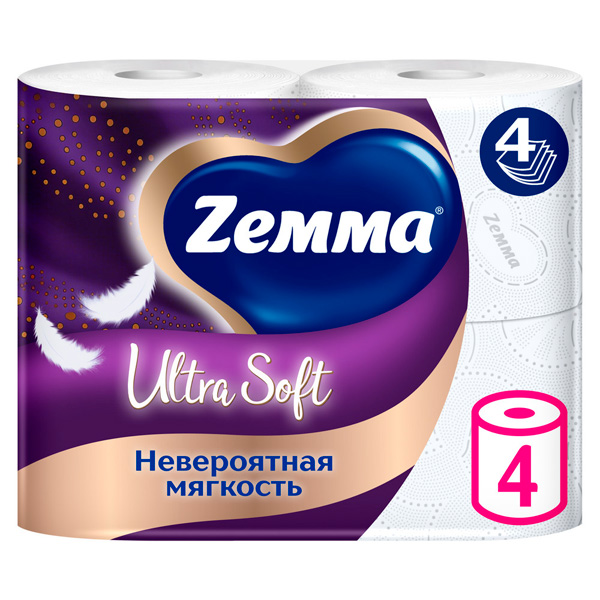 Благодаря четырем мягким и пышным слоям белоснежная туалетная бумага Zewa Ultra Soft дарит ощущение самой мягкой заботы. Попробуйте невероятную мягкость!